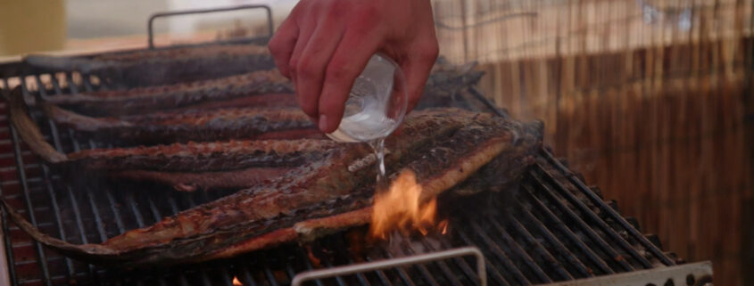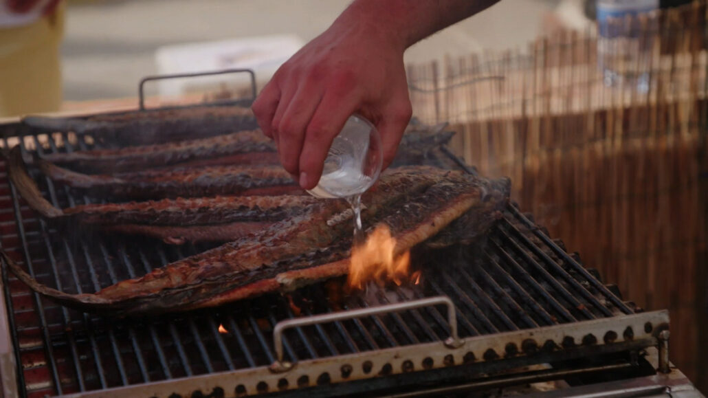 Joel Ostrat ja Mart Sander on Itaalias, kus nad proovivad angerjafestivalil grillitud angerjat. Angerjatel on selgroog välja võetud ning neid grillitakse nahk allapoole.